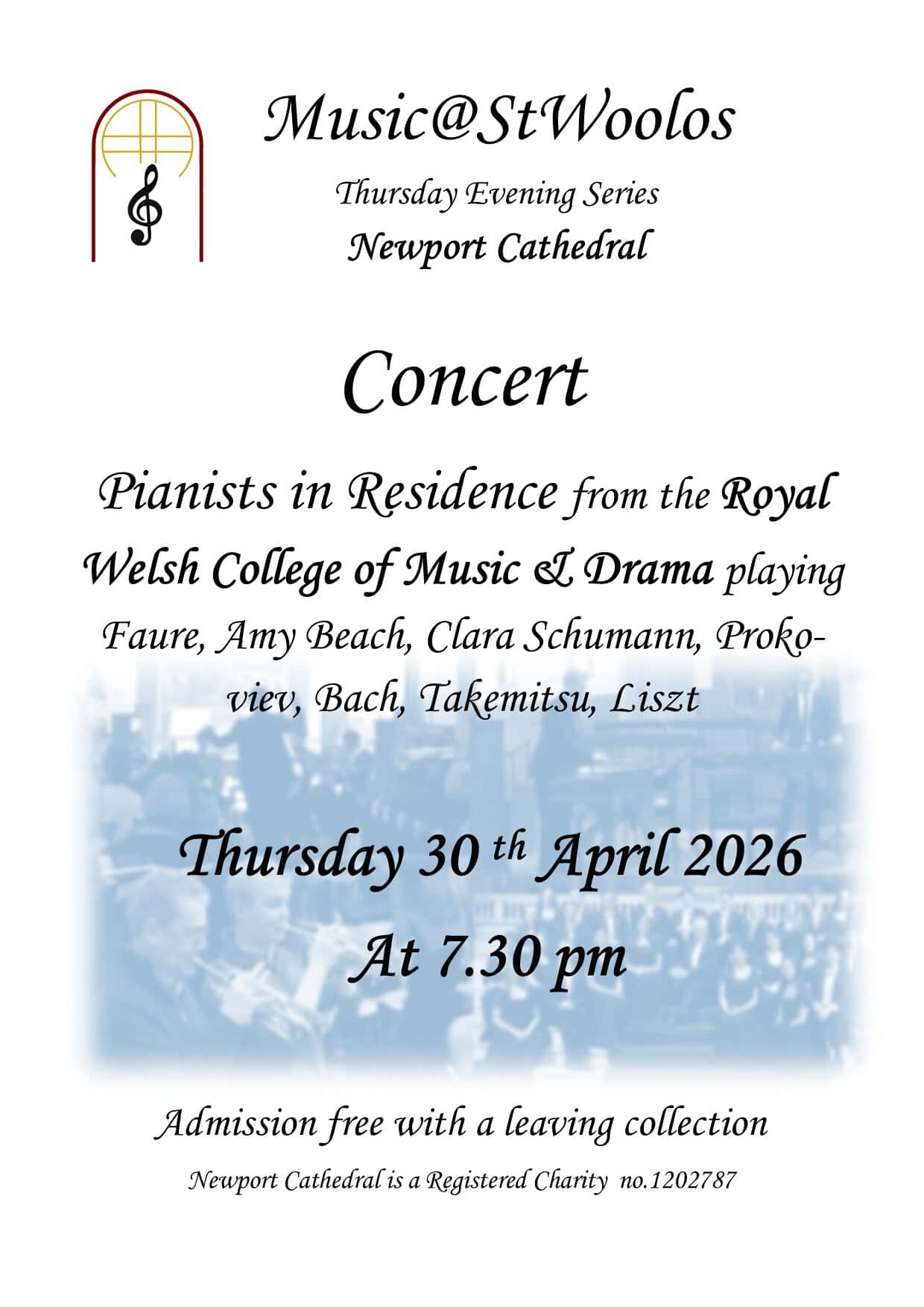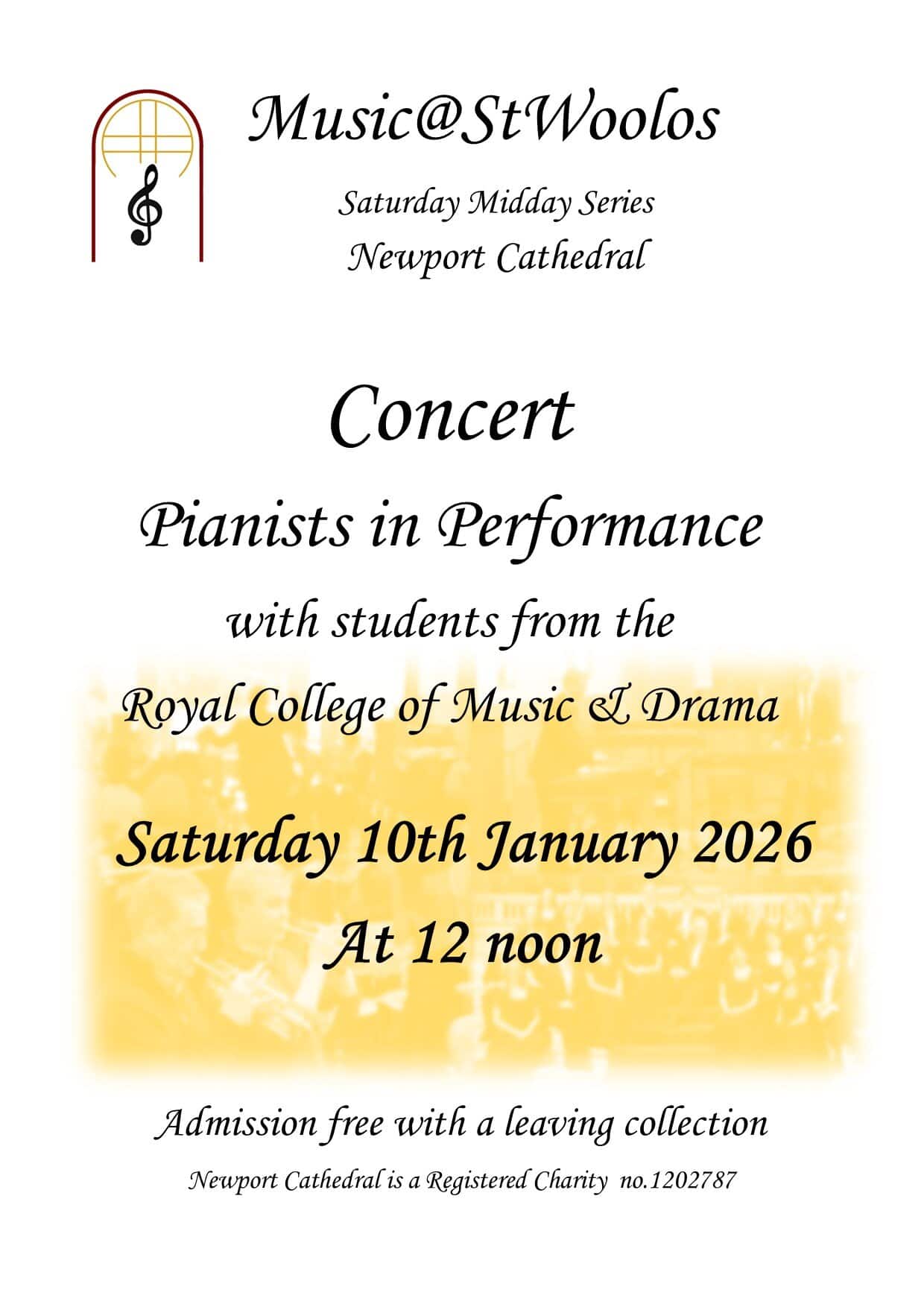 The Saturday Midday Series (generally held on the second Saturday of each month) will often afford the opportunity for students from the Royal Welsh College of Music and Drama to hone their performance skills, as well as helping to raise funds for the Cathedral to restore and maintain the fabric of the building and enable it to continue to fulfil its role in the community.
